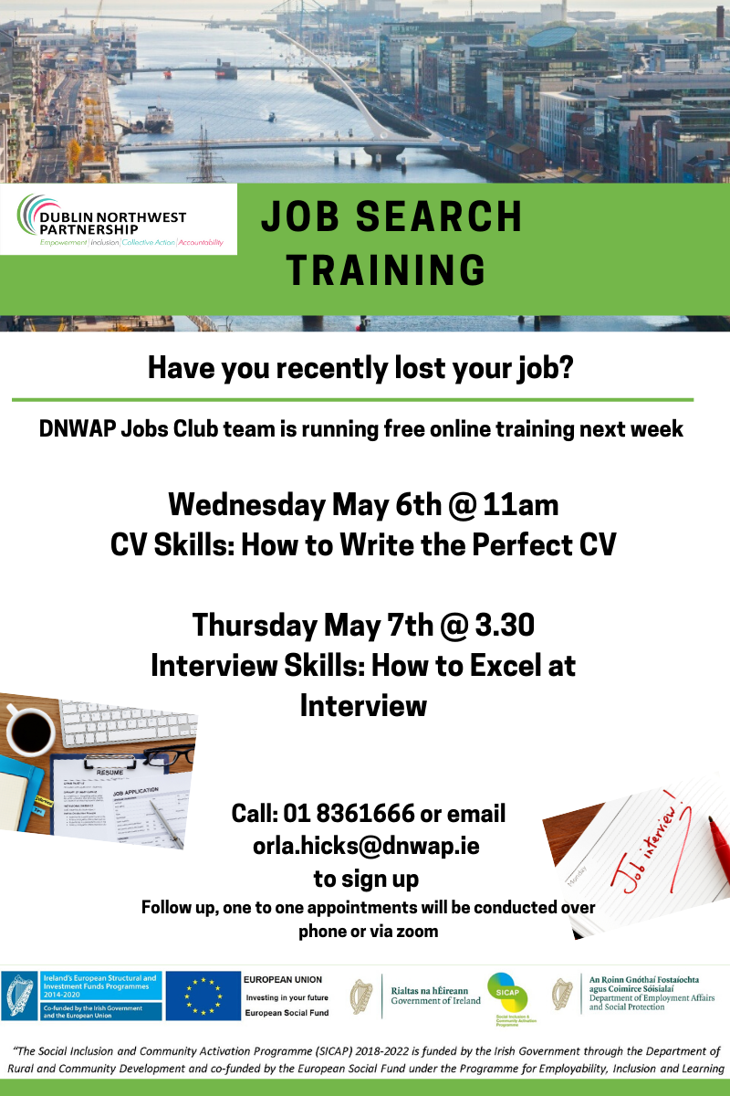 Please click here to view a short video detailing the help that those living in Dublin Northwest can get with their job seeking. We offer a free, one to one service aimed at helping you get the job you want.